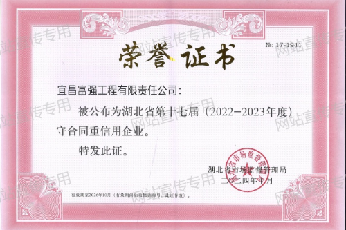 富強(qiáng)始終堅持以黨建引領(lǐng)企業(yè)健康發(fā)展,努力營造穩(wěn)定和諧、奮進(jìn)擔(dān)當(dāng)、誠實信用的企業(yè)氛圍,積極參與行業(yè)協(xié)會等組織的交流與活動。近年來先后獲得秭歸“納稅企業(yè)十強(qiáng)”、“先進(jìn)基層黨組織”、“愛心企業(yè)”、宜昌市“建筑企業(yè)十強(qiáng)”、宜昌市“守合同重信用企業(yè)”、湖北省“守合同重信用企業(yè)”、省安全文明工地、省建筑結(jié)構(gòu)優(yōu)質(zhì)工程、六個工地示范項目等榮譽(yù)稱號。是宜昌市唯一連續(xù)七年榮獲省交通廳普通公路信用評價為“AA”的路橋施工企業(yè)。