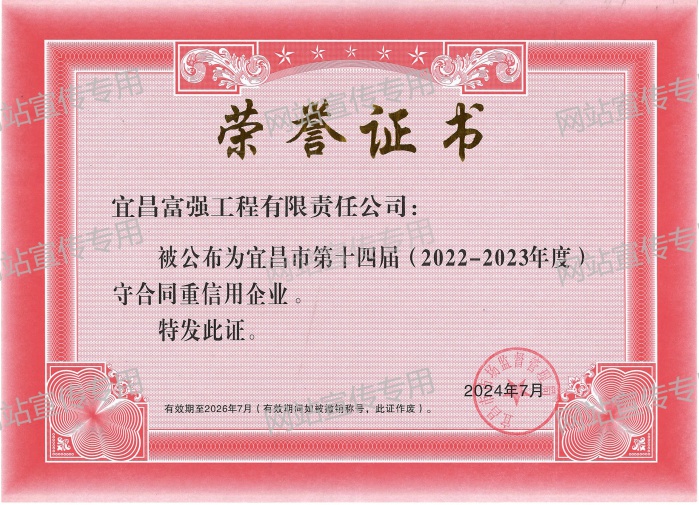 宜昌市第十四屆2022-2023守合同重信用榮譽(yù)證書(shū)
