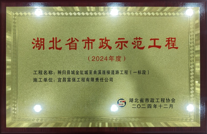 秭歸金曲路項(xiàng)目榮獲湖北省市政示范工程